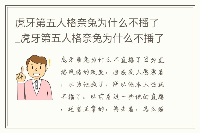 - 虎牙第五人格奈兔為什么不播了_虎牙第五人格奈兔為什么不播了呀