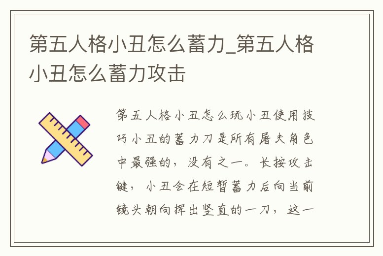 第五人格小丑怎么蓄力_第五人格小丑怎么蓄力攻擊