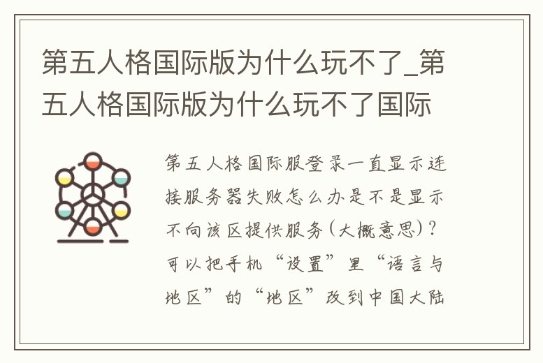第五人格國際版為什么玩不了_第五人格國際版為什么玩不了國際服