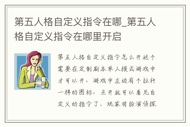 這個需要在定制劇本單人模式游戲中才可以開,游戲中左邊有個拉桿一樣的圖標,點開就可以看見自定義的指令了。玩家將扮演偵探奧爾菲斯,在收到一封神秘的委托信后,進入惡名昭著的莊園調查一件失蹤案。在進行證據調查過程中。