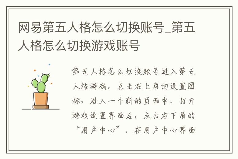 第五人格切換賬號方法如下:在游戲主界面找到右上角齒輪狀的圖標,然后在設置頁面中點擊右下角的用戶中心,這樣就可以進入用戶的詳細頁面。在用戶中心中點擊右側的切換賬號,并在登錄欄下方點擊其他賬號登錄即可切換至其。