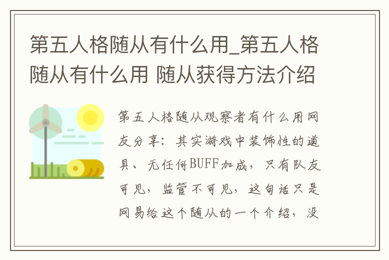 第五人格隨從觀察者有什么用