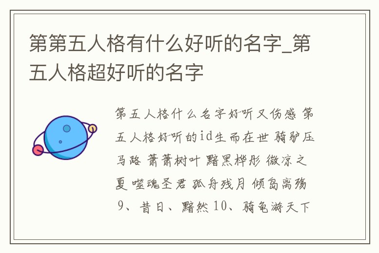 第第五人格有什么好聽(tīng)的名字_第五人格超好聽(tīng)的名字