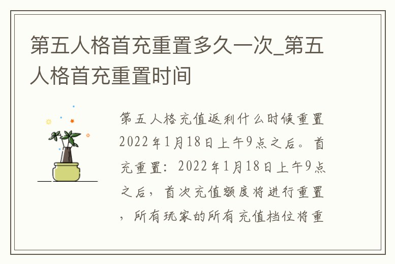 第五人格首充重置多久一次_第五人格首充重置時(shí)間