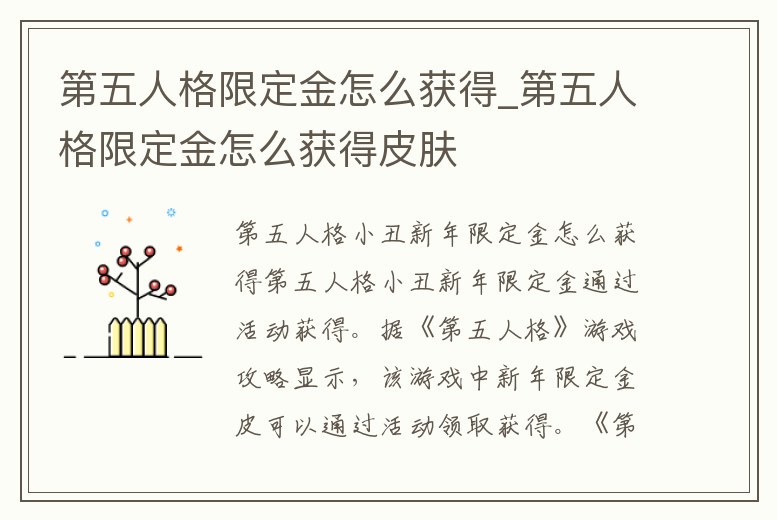 - 第五人格限定金怎么獲得_第五人格限定金怎么獲得皮膚
