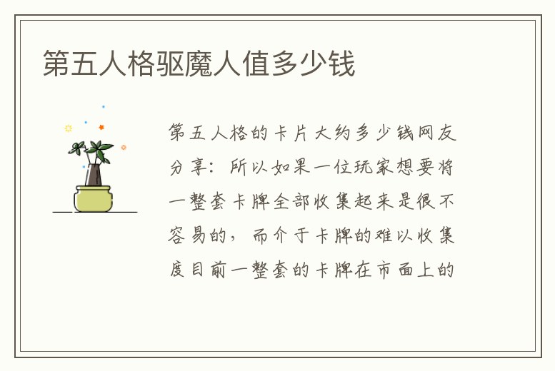 第五人格驅魔人值多少錢