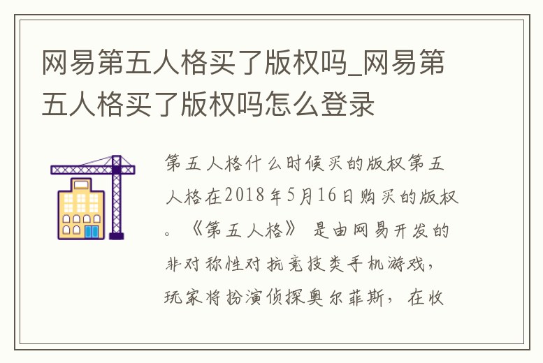 網(wǎng)易第五人格買了版權(quán)嗎_網(wǎng)易第五人格買了版權(quán)嗎怎么登錄