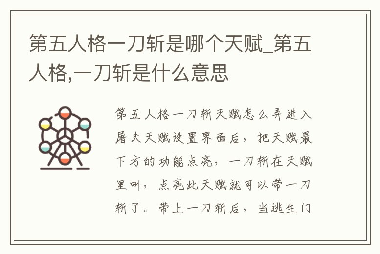 - 第五人格一刀斬是哪個(gè)天賦_第五人格,一刀斬是什么意思