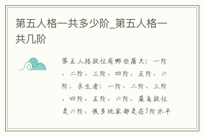 屠夫:一階、二階、三階、四階、五階、六階。求生者:一階、二階、三階、四階、五階、六階。最高段位是六階,很多玩家都是在5階水平,5階算是高水平的,也就是常說的高端局,我們的段位是有變化的。