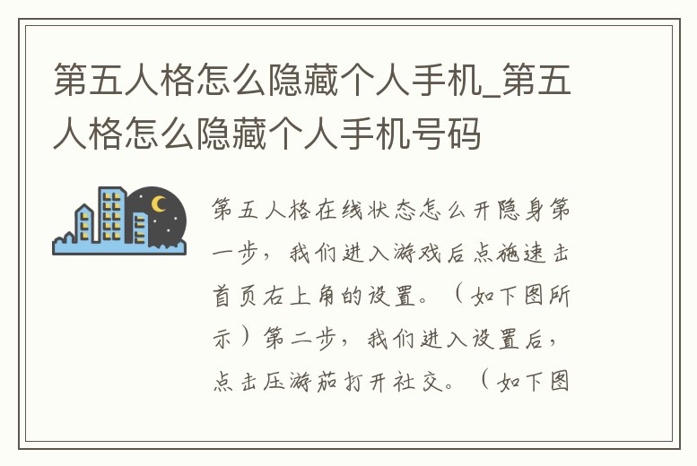 第五人格怎么隱藏個人手機_第五人格怎么隱藏個人手機號碼
