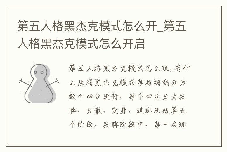 第五人格黑杰克模式怎么開_第五人格黑杰克模式怎么開啟