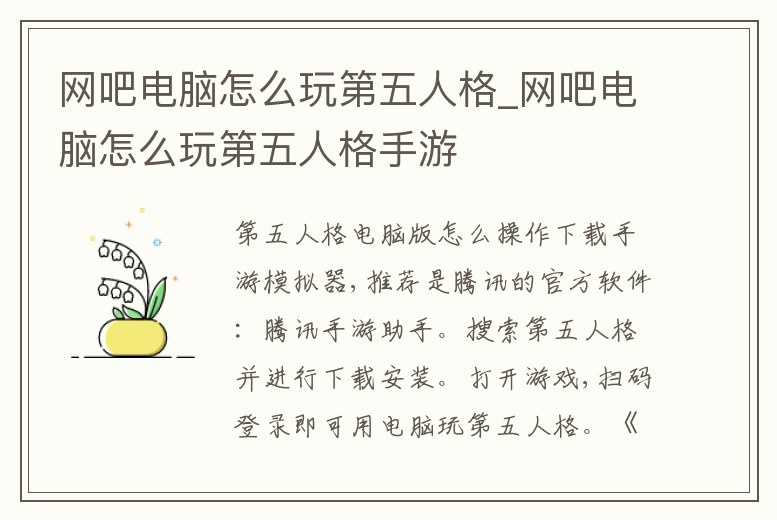 網吧電腦怎么玩第五人格_網吧電腦怎么玩第五人格手游