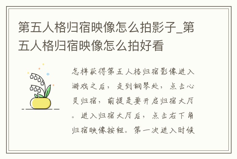第五人格歸宿映像怎么拍影子_第五人格歸宿映像怎么拍好看