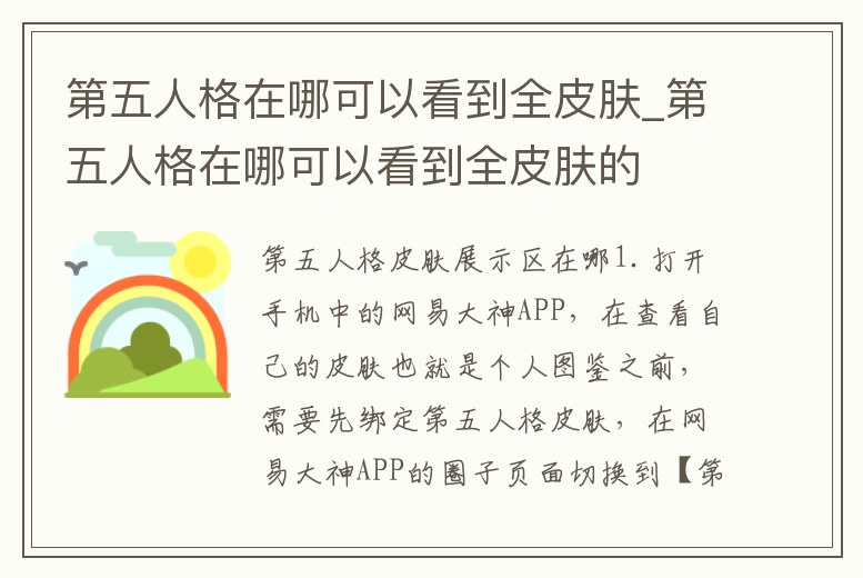 第五人格在哪可以看到全皮膚_第五人格在哪可以看到全皮膚的