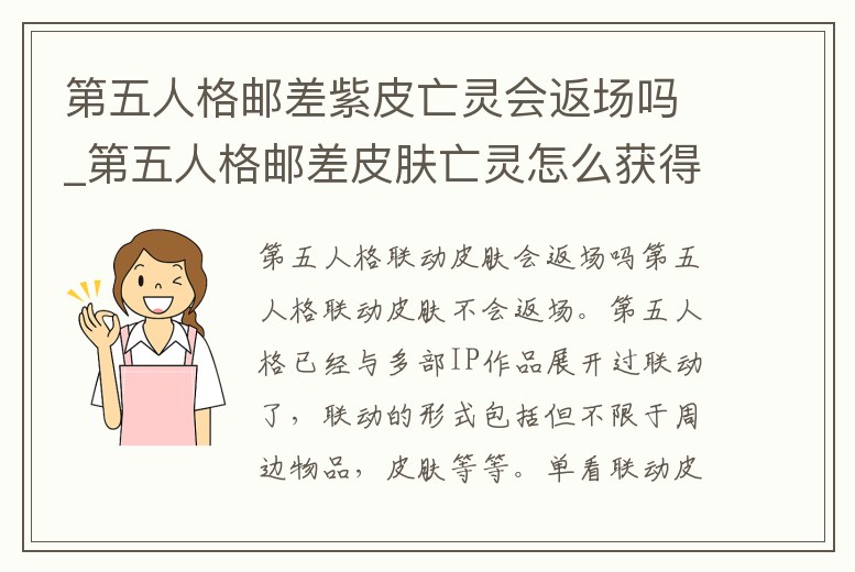- 第五人格郵差紫皮亡靈會(huì)返場(chǎng)嗎_第五人格郵差皮膚亡靈怎么獲得