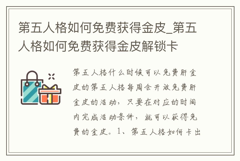第五人格如何免費獲得金皮_第五人格如何免費獲得金皮解鎖卡