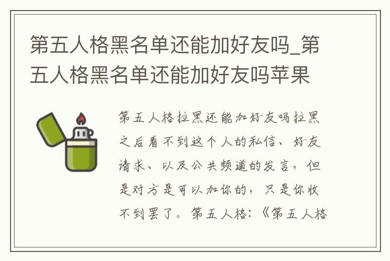拉黑之后看不到這個人的私信、好友請求、以及公共頻道的發言,但是對方是可以加你的,只是你收不到罷了。第五人格:《第五人格》是由網易開發的非對稱性對抗競技類(Asymmetrical Battle Arena)游戲,游戲于2018年4月2日開啟。