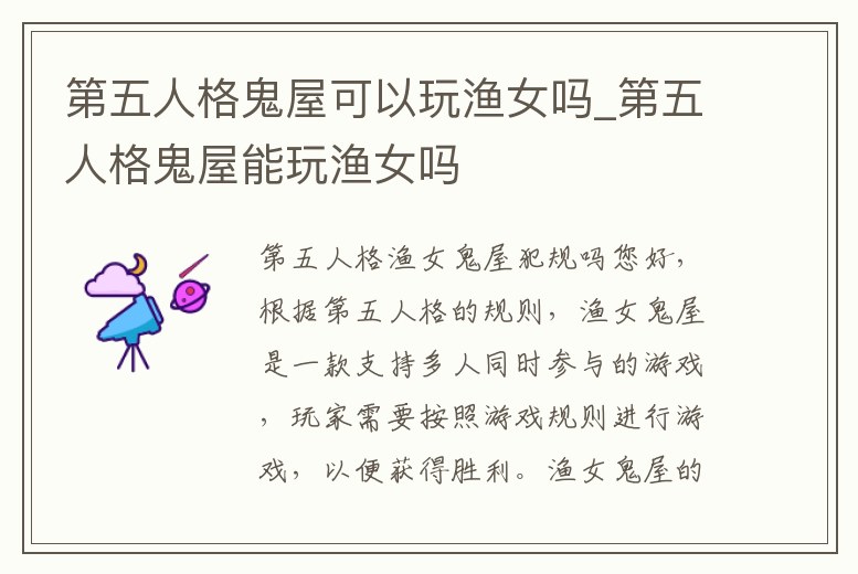 您好,根據(jù)第五人格的規(guī)則,漁女鬼屋是一款支持多人同時參與的游戲,玩家需要按照游戲規(guī)則進行游戲,以便獲得勝利。漁女鬼屋的犯規(guī)行為包括:玩家不能使用外部資源,不能抄襲他人的答案,不能破壞游戲規(guī)則,不能惡意攻擊其他玩家。