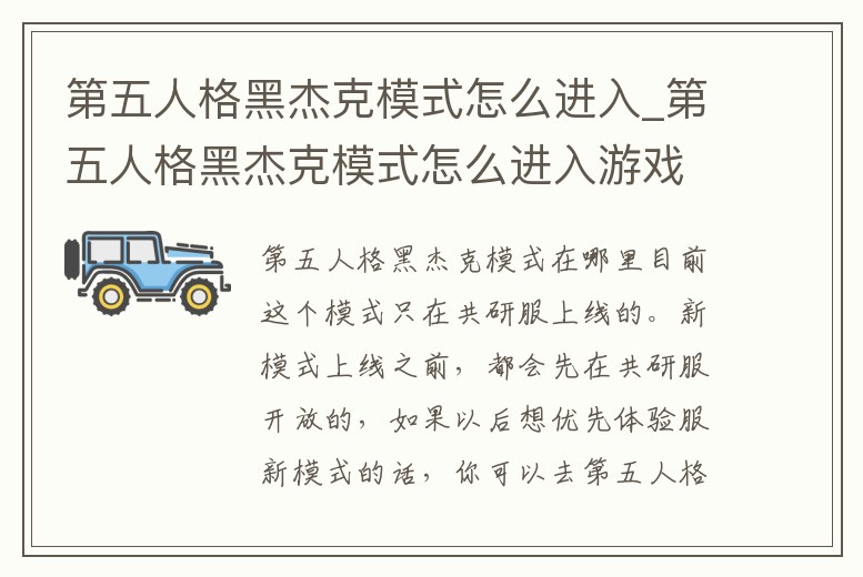 目前這個模式只在共研服上線的。新模式上線之前,都會先在共研服開放的,如果以后想優先體驗服新模式的話,你可以去第五人格共研服申請資格。
