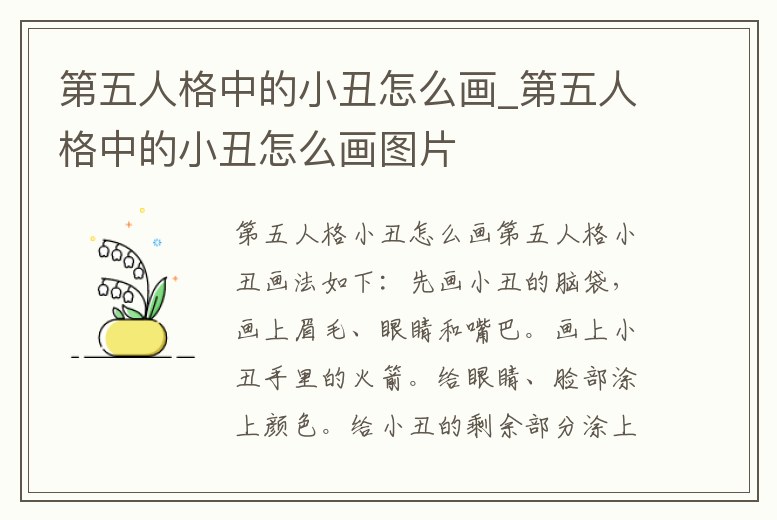 第五人格小丑皮膚變臉王的畫法可以分為幾個步驟:1.先畫出一張笑臉,然后根據(jù)要求把頭發(fā)和眉毛等畫出來。2.運用水彩畫出表情,細節(jié)要做到精細。3.將皮膚部分,服裝,以及背景畫出來,使整幅畫來更加生動有趣。