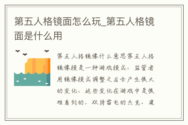 第五人格鏡面怎么玩_第五人格鏡面是什么用