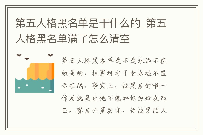 第五人格黑名單是干什么的_第五人格黑名單滿了怎么清空