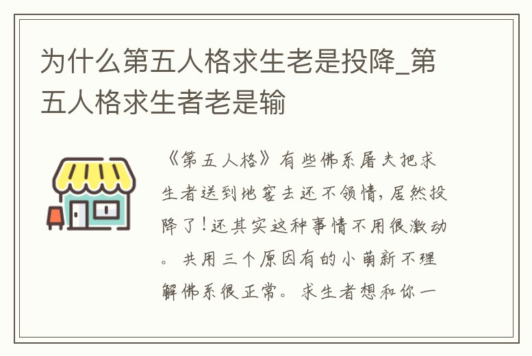為什么第五人格求生老是投降_第五人格求生者老是輸