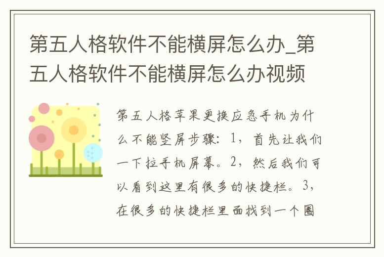 第五人格軟件不能橫屏怎么辦_第五人格軟件不能橫屏怎么辦視頻