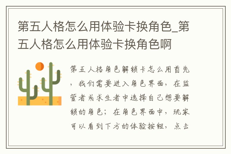 第五人格怎么用體驗卡換角色_第五人格怎么用體驗卡換角色啊