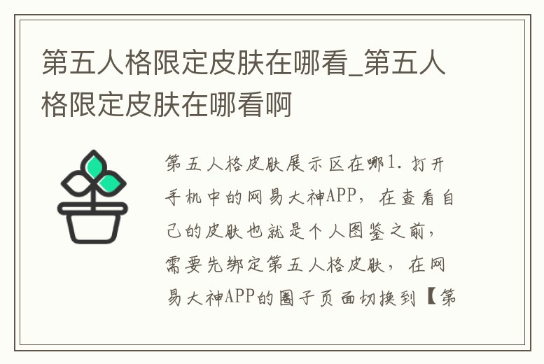 第五人格限定皮膚在哪看_第五人格限定皮膚在哪看啊