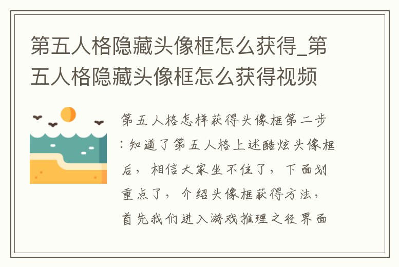 第五人格隱藏頭像框怎么獲得_第五人格隱藏頭像框怎么獲得視頻
