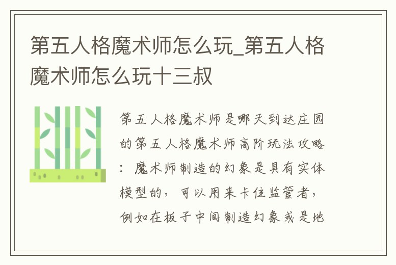 第五人格魔術師怎么玩_第五人格魔術師怎么玩十三叔