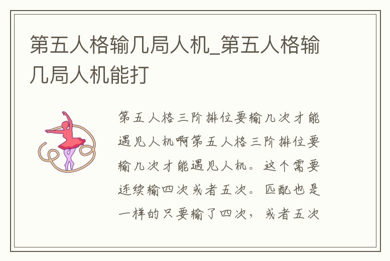 第五人格二 階排位連輸四局,下一 局應該是會有人機局了。目前人機局的人機也會有皮膚隨從。連輸四局是指四局連敗中間不能有平局或者贏的情況。