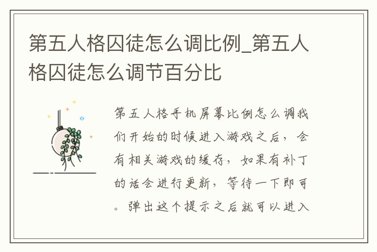 第五人格囚徒怎么調比例_第五人格囚徒怎么調節百分比