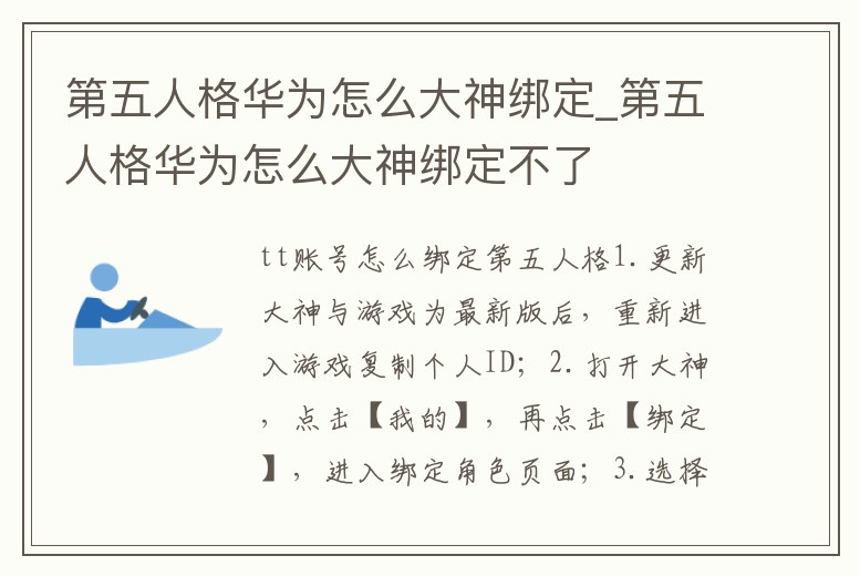 第五人格華為怎么大神綁定_第五人格華為怎么大神綁定不了