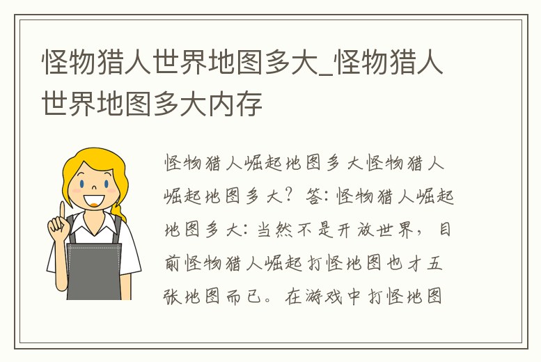 怪物獵人世界地圖多大_怪物獵人世界地圖多大內存