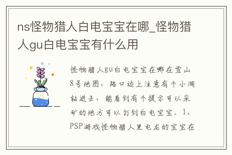 ns怪物獵人白電寶寶在哪_怪物獵人gu白電寶寶有什么用