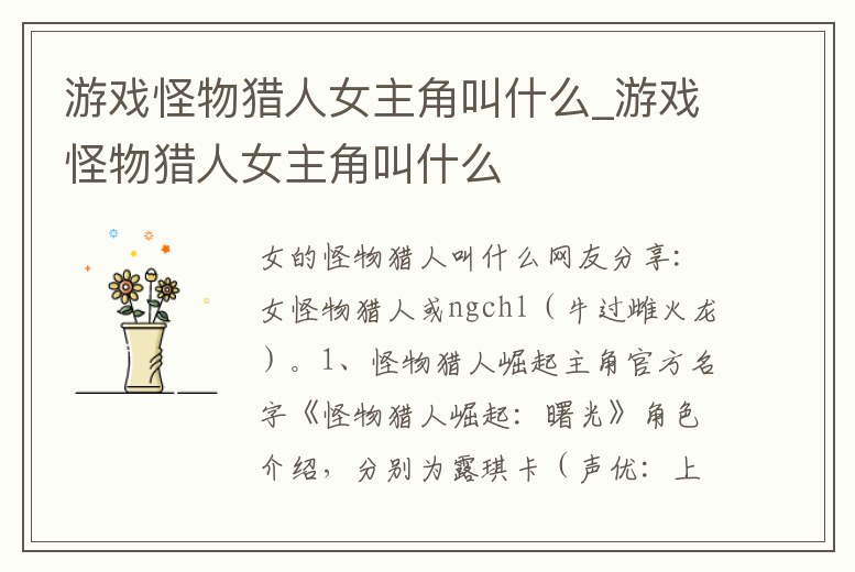 游戲怪物獵人女主角叫什么_游戲怪物獵人女主角叫什么