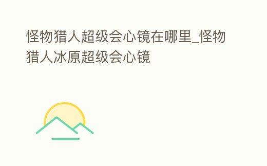 怪物獵人超級會心鏡在哪里_怪物獵人冰原超級會心鏡
