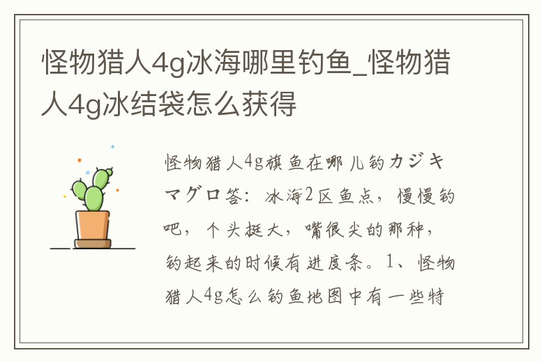 怪物獵人4g冰海哪里釣魚_怪物獵人4g冰結(jié)袋怎么獲得