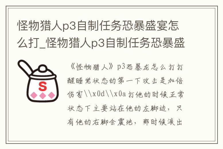 怪物獵人p3自制任務恐暴盛宴怎么打_怪物獵人p3自制任務恐暴盛宴怎么打不過