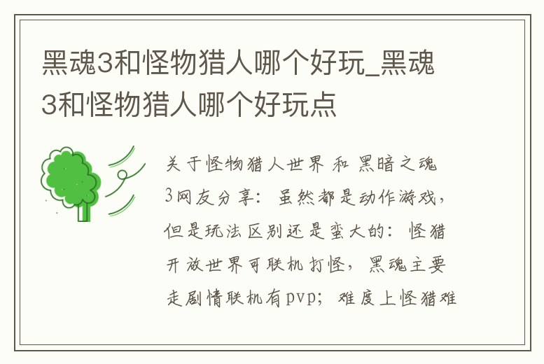 黑魂3和怪物獵人哪個好玩_黑魂3和怪物獵人哪個好玩點