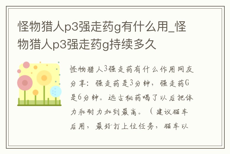 怪物獵人p3強走藥g有什么用_怪物獵人p3強走藥g持續多久