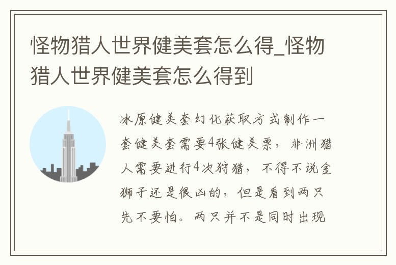 怪物獵人世界健美套怎么得_怪物獵人世界健美套怎么得到