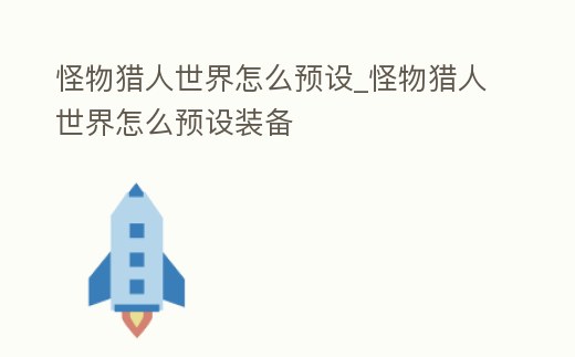 怪物獵人世界怎么預(yù)設(shè)_怪物獵人世界怎么預(yù)設(shè)裝備