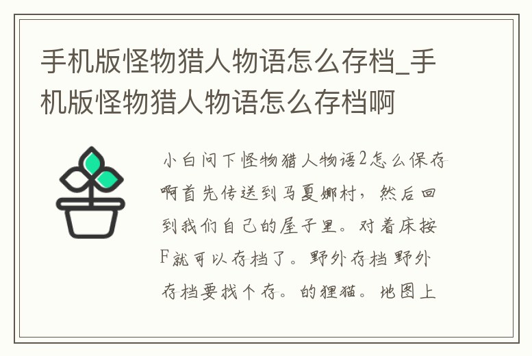 手機版怪物獵人物語怎么存檔_手機版怪物獵人物語怎么存檔啊