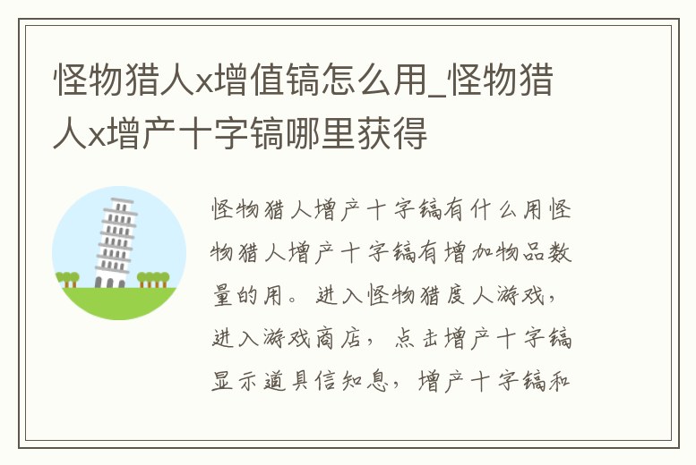 怪物獵人x增值鎬怎么用_怪物獵人x增產(chǎn)十字鎬哪里獲得