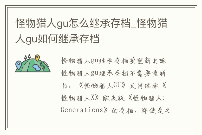 怪物獵人gu怎么繼承存檔_怪物獵人gu如何繼承存檔
