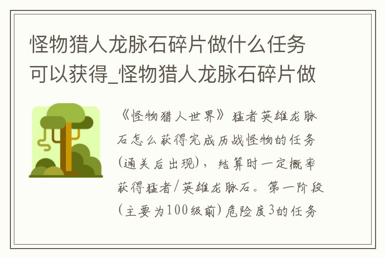怪物獵人龍脈石碎片做什么任務可以獲得_怪物獵人龍脈石碎片做什么任務可以獲得龍蛋