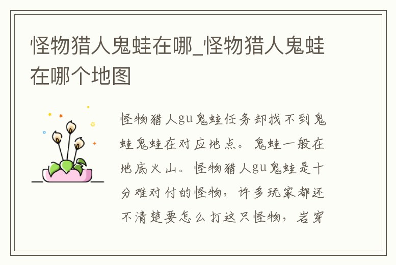 怪物獵人鬼蛙在哪_怪物獵人鬼蛙在哪個地圖